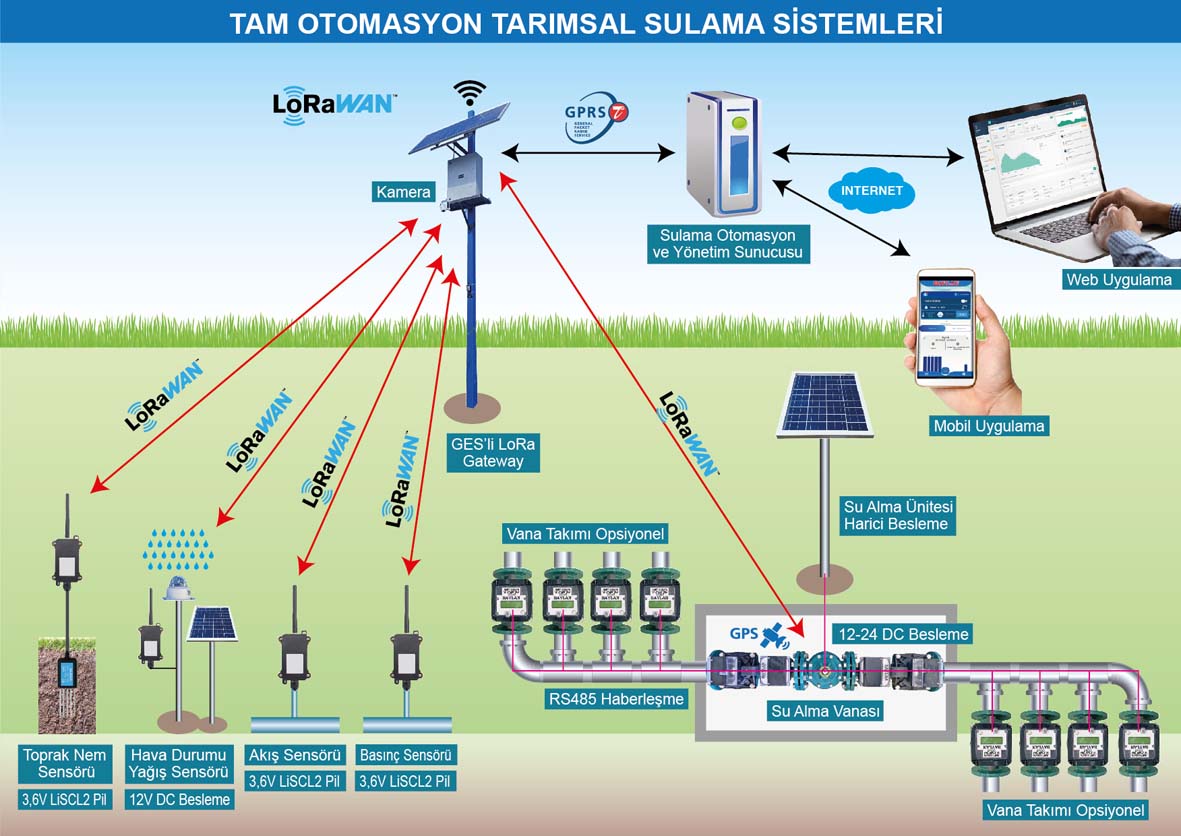 Uzaktan Yönetim işlemleri için LoRaWAN ağı kurulmalıdır. Sulama Sayaçları, LoRaWAN Ağ Geçidi Cihazları aracılığıyla merkezi sunucularla iletişim kurar. LORA SİSTEMİ LoRaWAN Ağ Geçidi Cihazları, sulama sayaçlarından gelen verileri BMS sistemine iletir. BMS sistemi üzerinde sulama sayacına gönderilen iş emri varsa otomatik olarak sayaca iletilir.